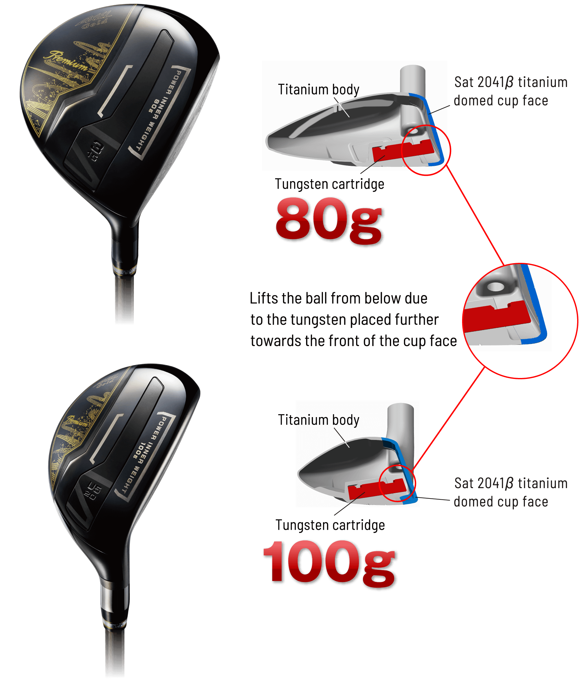[U5,6] Face: Sat 2041 β cup Body: 6-4 Ti Weight: inner weight 100 g |